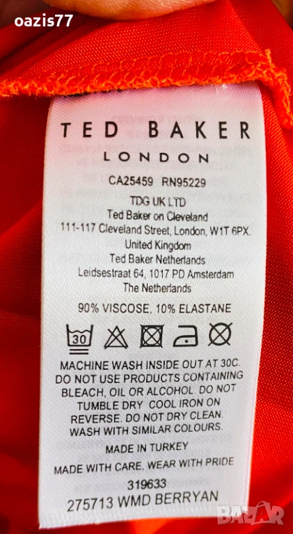 Червена рокля, S/M, Ted Baker/London. Нова → Обява 54194595
