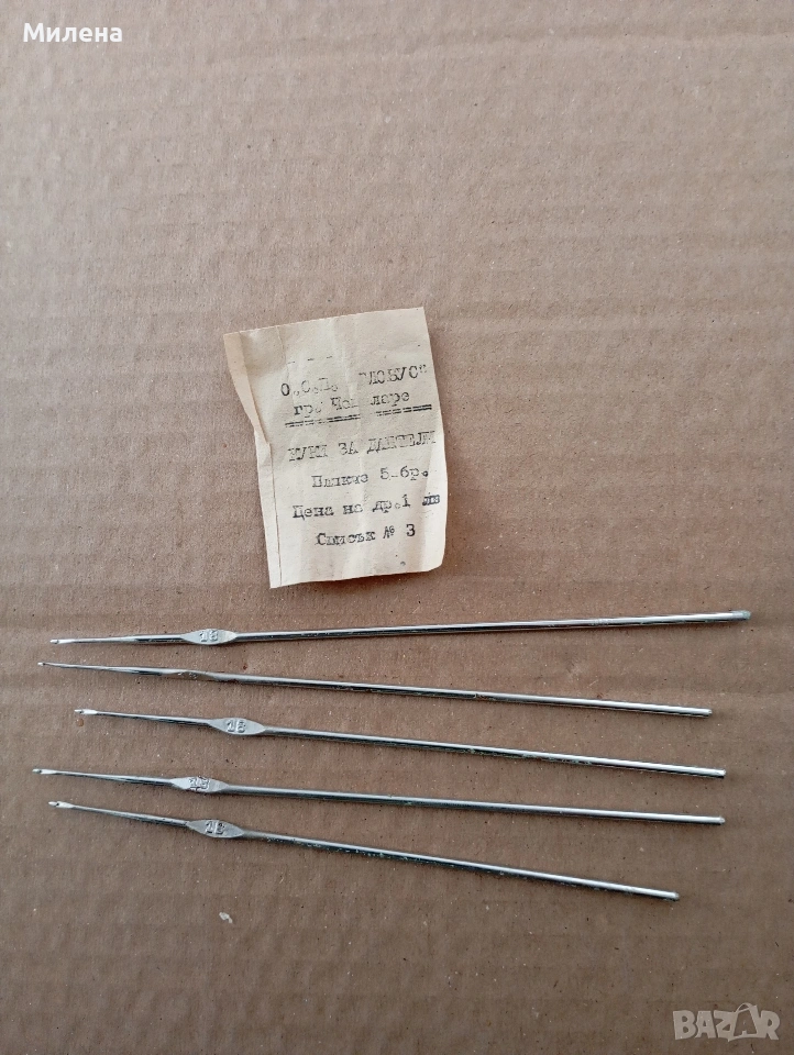 Продавам стари неупотребявани куки за плетене на 1 кука на дантела.Номер 18, производство Чепеларе. Някои от тях имат миниатюрни петънца от ръжда заради лошо съхранение. Цена 0,30 евро за брой.