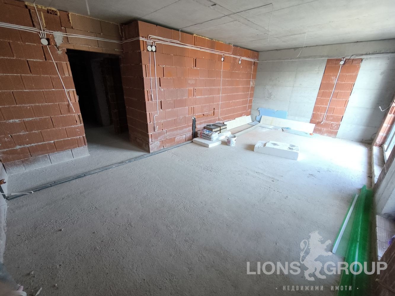 Апартаментът има следното разпределение : Просторен и слънчев дневен тракт, две хубави спални, две баня + WC, килер(склад), коридор, две тераси.