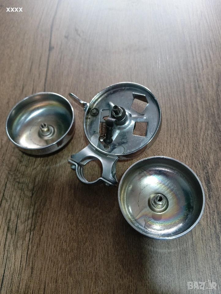 Ретро вело звънец. Средата е неподвижна а се въртят двете страници и звъни много силно.