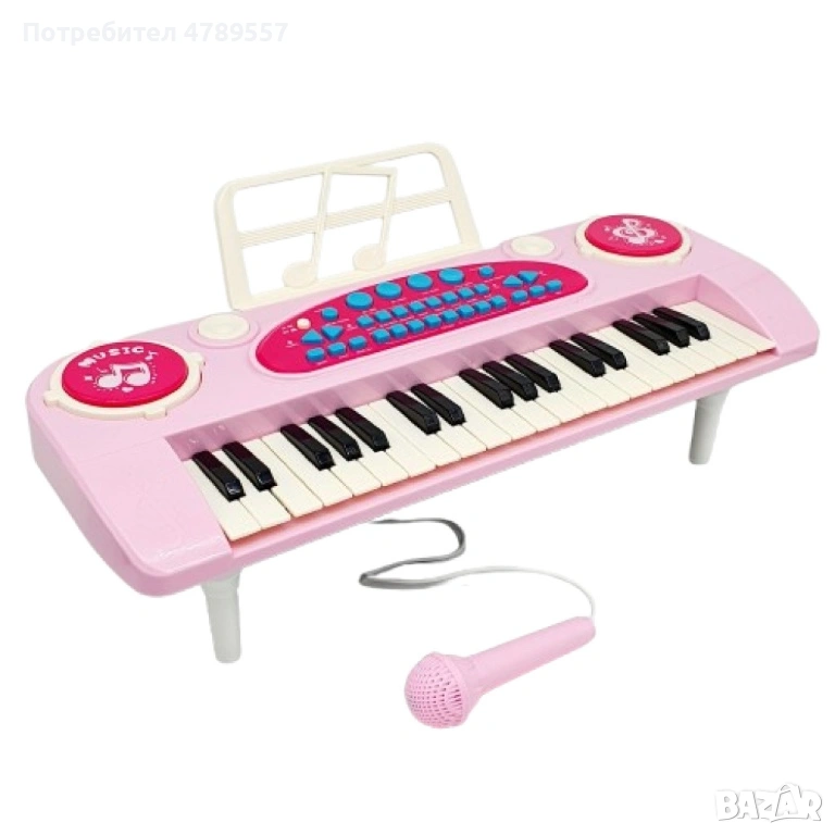 Розово детско пиано с микрофон и 37 клавиша