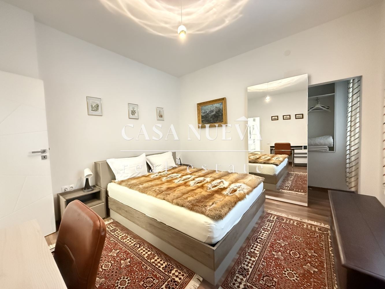 CASA NUEVA REAL ESTATE отдава под наем просторен тристаен апартамент с площ от 100 кв.м., разположен на втори етаж в къща в централната част на гр. София, на ул. Люлин планина. Локацията е изключително комуникативна на около 15 минути пешеходно разстояние от Национален дворец на културата, на 3 минути от УМБАЛСМ Пирогов и на около 6 минути от метростанциите 'Медицинска академия' и 'НДК II'.