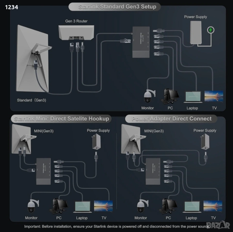 Продавам Ethernet адаптер за Starlink Gen 3 и Starlink Mini, който добавя 4 LAN порта за кабелна връзка. Идеално решение за по-стабилен интернет без лаг и прекъсвания.