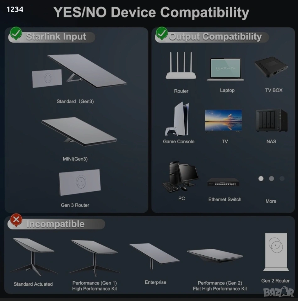 Starlink Ethernet Adapter Gen 3 / Mini – 4 порта, Gigabit, Plug & Play → Обява 54195499
