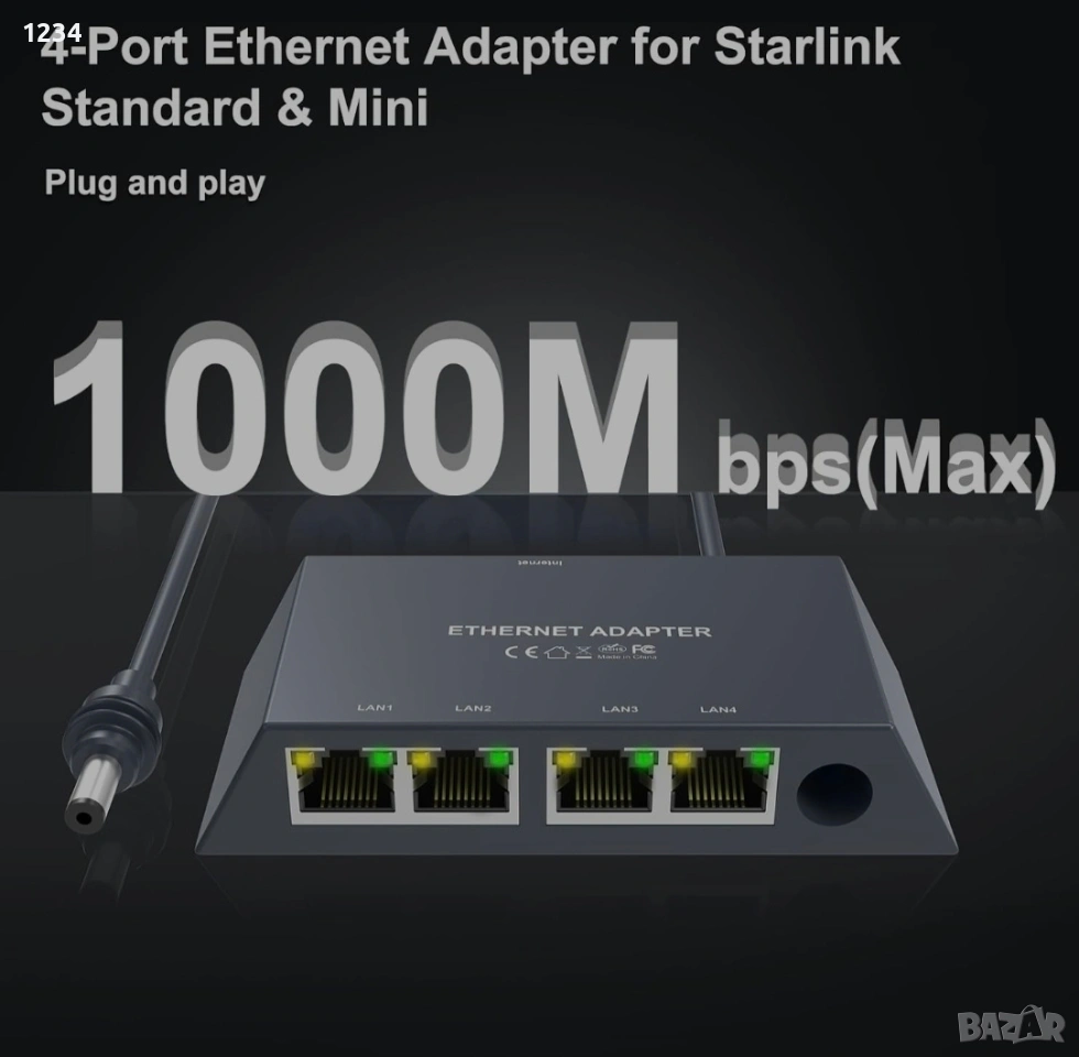 Starlink Ethernet Adapter Gen 3 / Mini – 4 порта, Gigabit, Plug & Play, снимка 1 - Друга електроника - 54195499 Starlink Ethernet Adapter Gen 3 / Mini – 4 порта, Gigabit, Plug & Play, снимка 2 - Друга електроника - 54195499 Starlink Ethernet Adapter Gen 3 / Mini – 4 порта, Gigabit, Plug & Play, снимка 3 - Друга електроника - 54195499 Starlink Ethernet Adapter Gen 3 / Mini – 4 порта, Gigabit, Plug & Play, снимка 4 - Друга електроника - 54195499 1/4