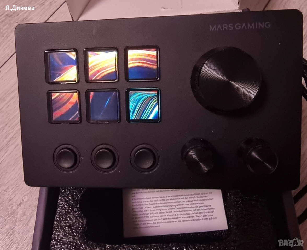 Програмируема клавиатура Basicolor N3 Stream Controller с 6 LCD макро бутона, 3 бутона и 3 колелца – за стрийминг (Youtube, Obs, Twitch), създаване, производителност (Office) и игри (Mac/Pc)