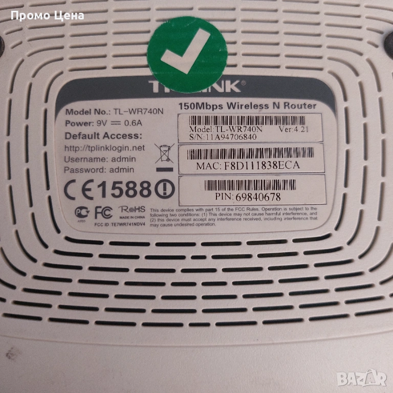Продавам надежден безжичен рутер TP-Link TL-WR740N. Устройството е в отлично техническо състояние и работи без забележки.