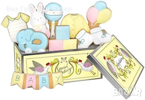 Нов Подаръчен комплект бисквити за бебе в метална кутия Ванилови за новородено подарък baby shower