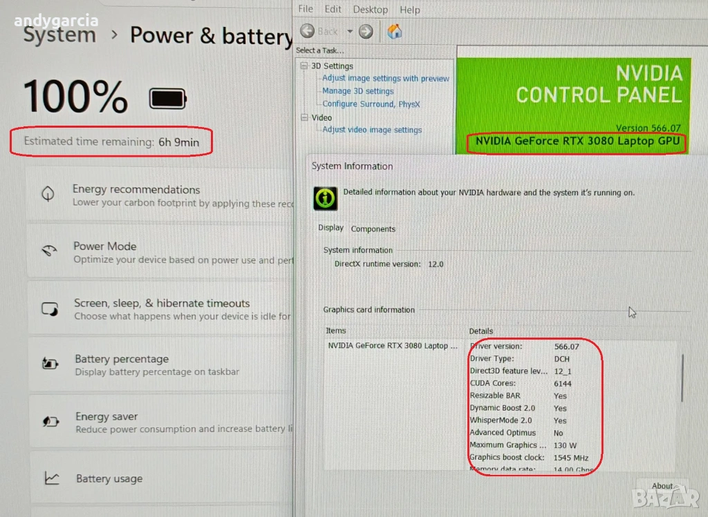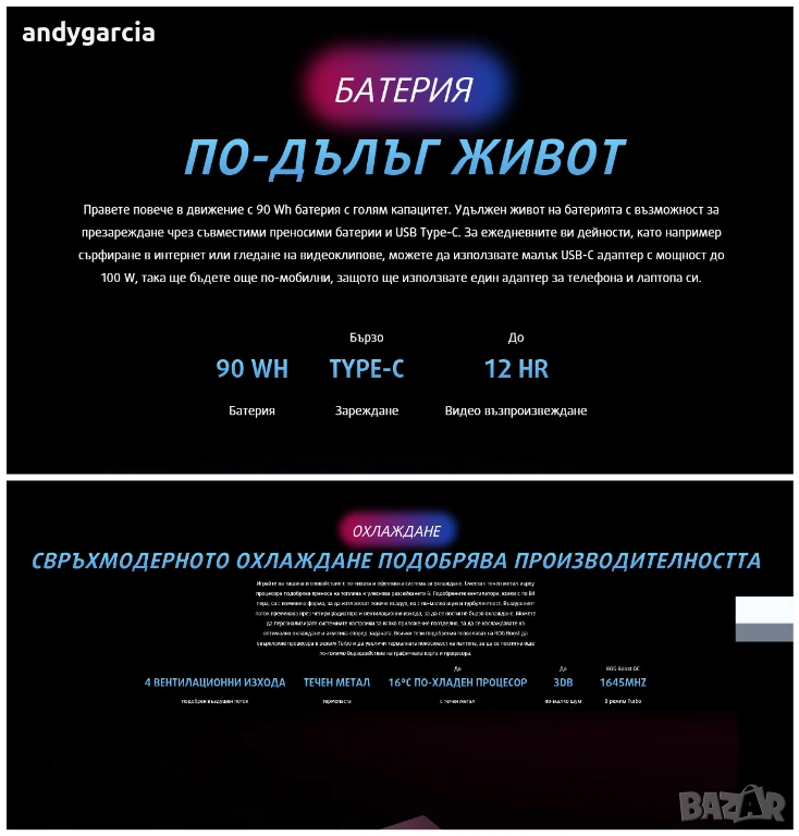 Батерия с голям капацитет 90Wh и живот до 3:00 часа и повече, зависимост от натоварването - НА СНИМКИТЕ.