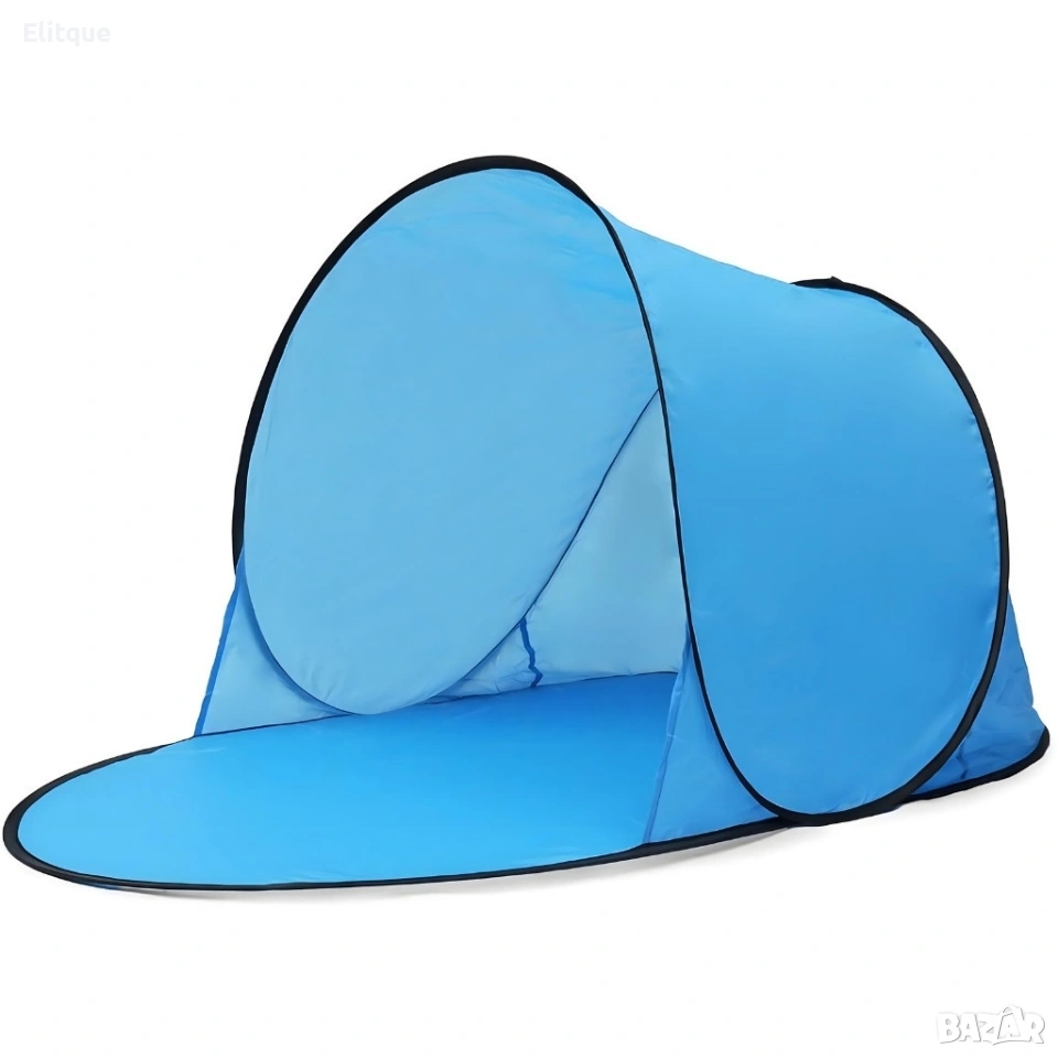 Тип: Разгъваща се плажна палатка, автоматична Размери в разгънато състояние: приблизително 150 x 150 x 90 см Размери в калъф: приблизително 50 см в диаметър Материал: висококачествена материя с UV филтър 30+ Рамка: гъвкаво фибростъкло за устойчивост и лесно сгъване Цвят: син Подходяща за: плаж, градина, пикник, семейни излети