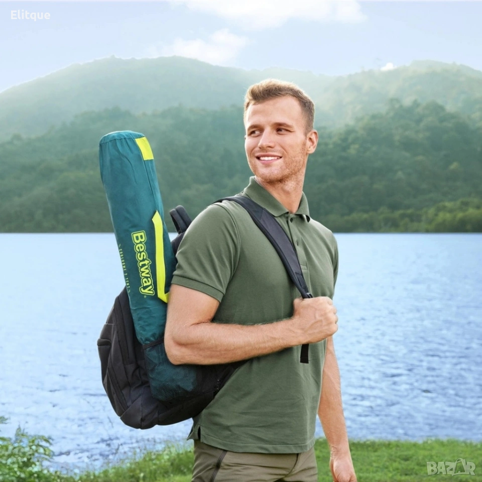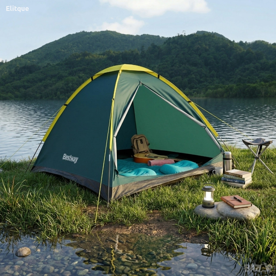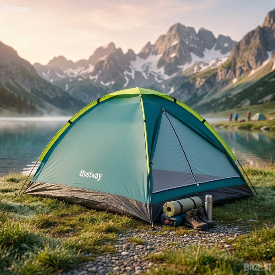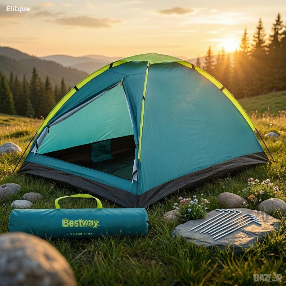 Производител: Bestway Размери: 205 x 145 x 100 см Материал: 190T полиестер Подов материал: PE 110 г/м² Водоустойчивост: 300 мм H₂O Тегло: 1,52 кг Структура: пръти от фибростъкло Допълнителни аксесоари: 8 колчета за закрепване