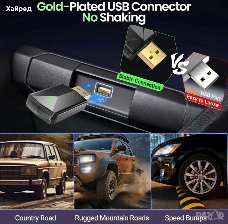 Нов Мини безжичен CarPlay Android Auto адаптер с бързо свързване кола автомобил → Обява 54196139