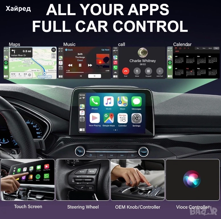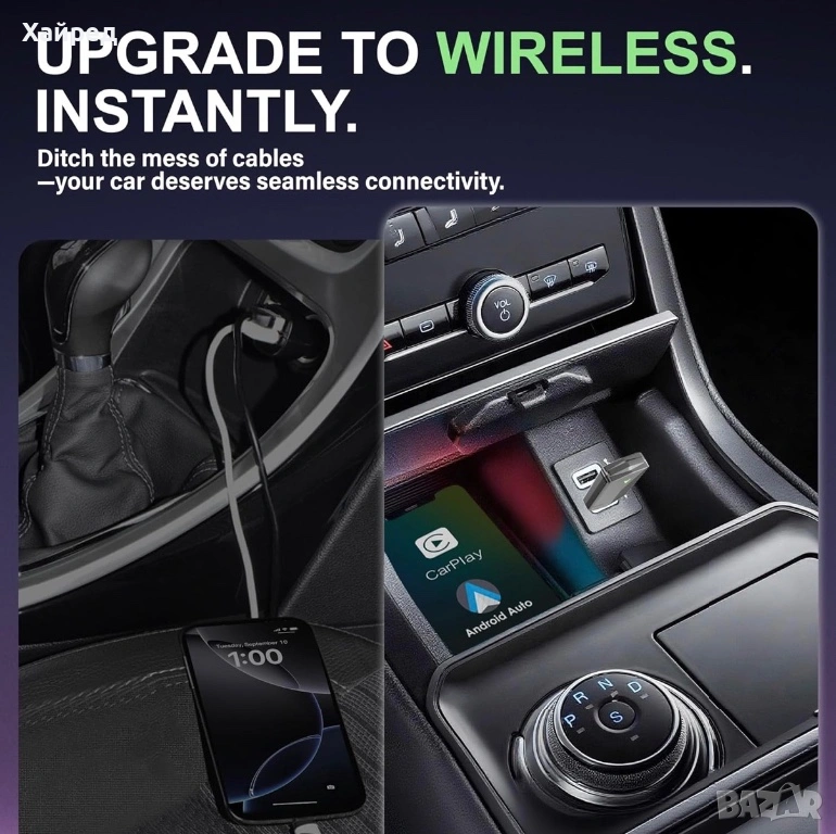 Безжична връзка за CarPlay и Android Auto — без кабели, пълен контрол на навигация, обаждания, музика и съобщения