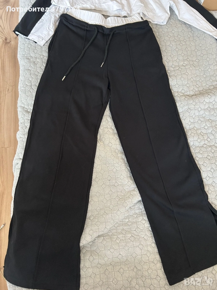 Панталонът е с разкроени крачоли и не е носен. Горнището е обличано само веднъж и е в отлично състояние – като ново, без забележки.