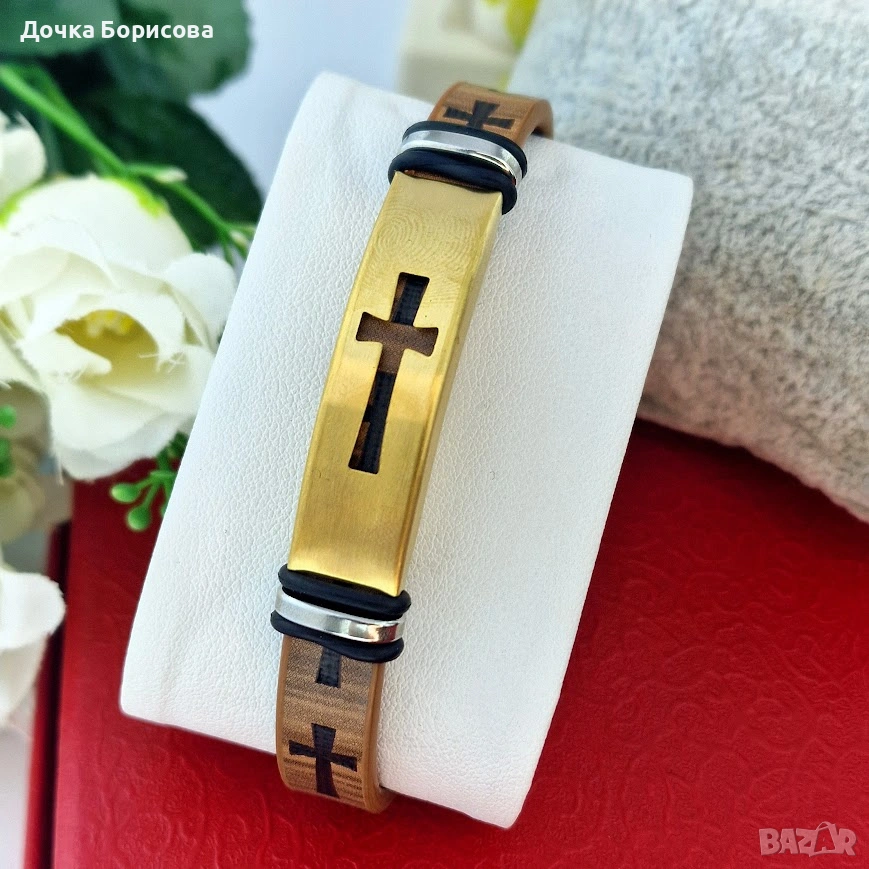 Wooden Cross Bracelet ✝️ | мъжка гривна дърво + позлата → Обява 54196212