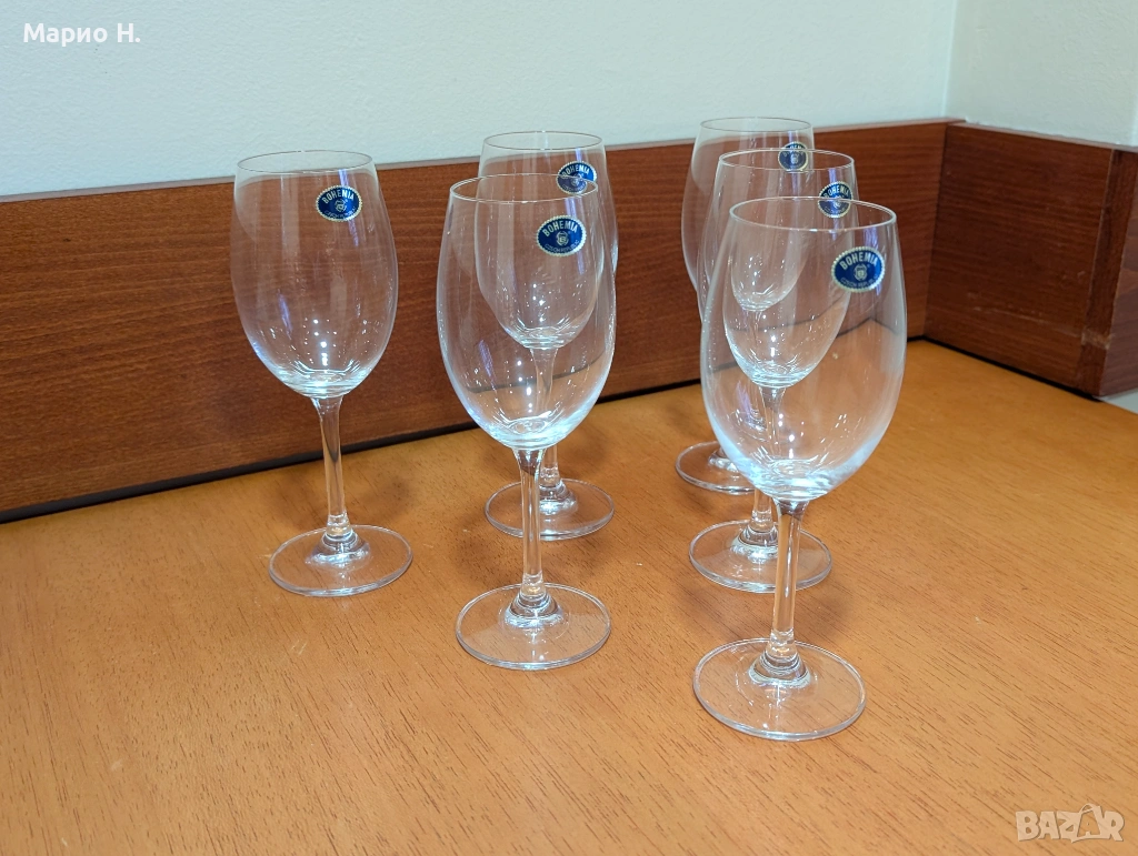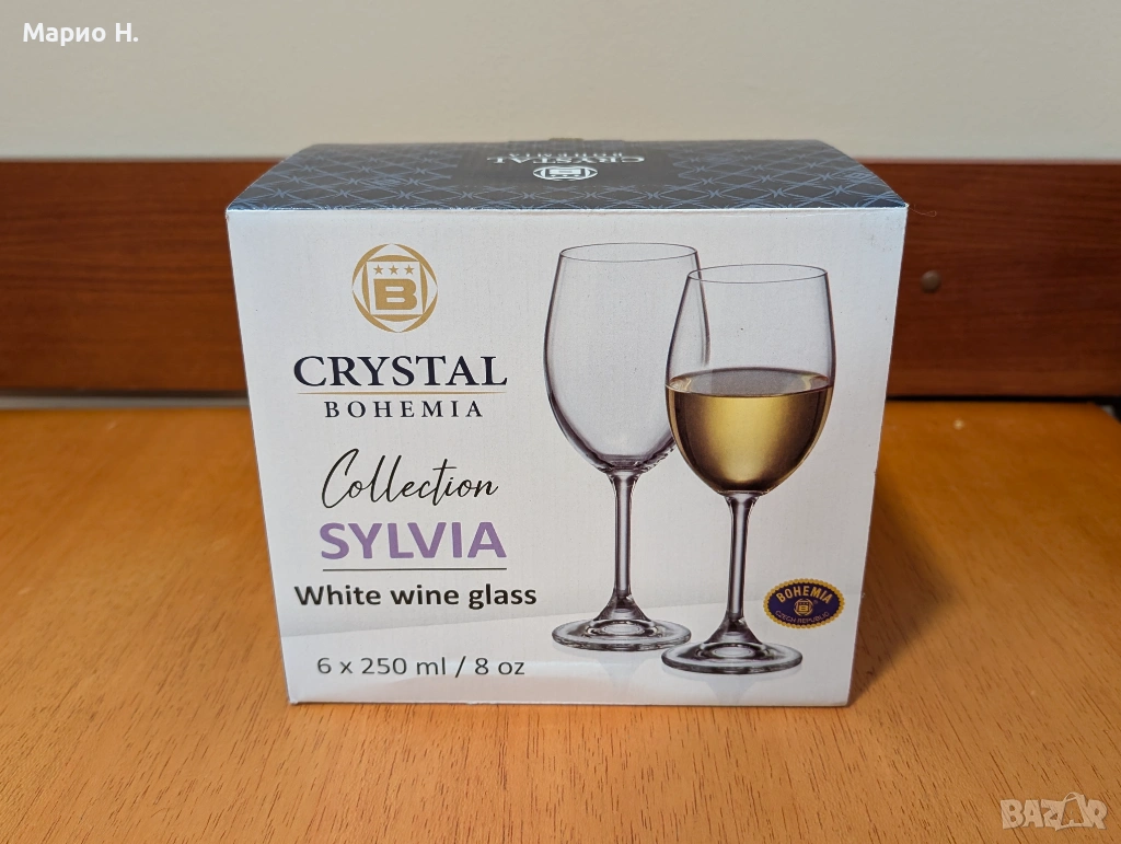 Продавам комплект от 6 броя чаши за бяло вино с класическа форма Crystal Bohemia Sylvia.