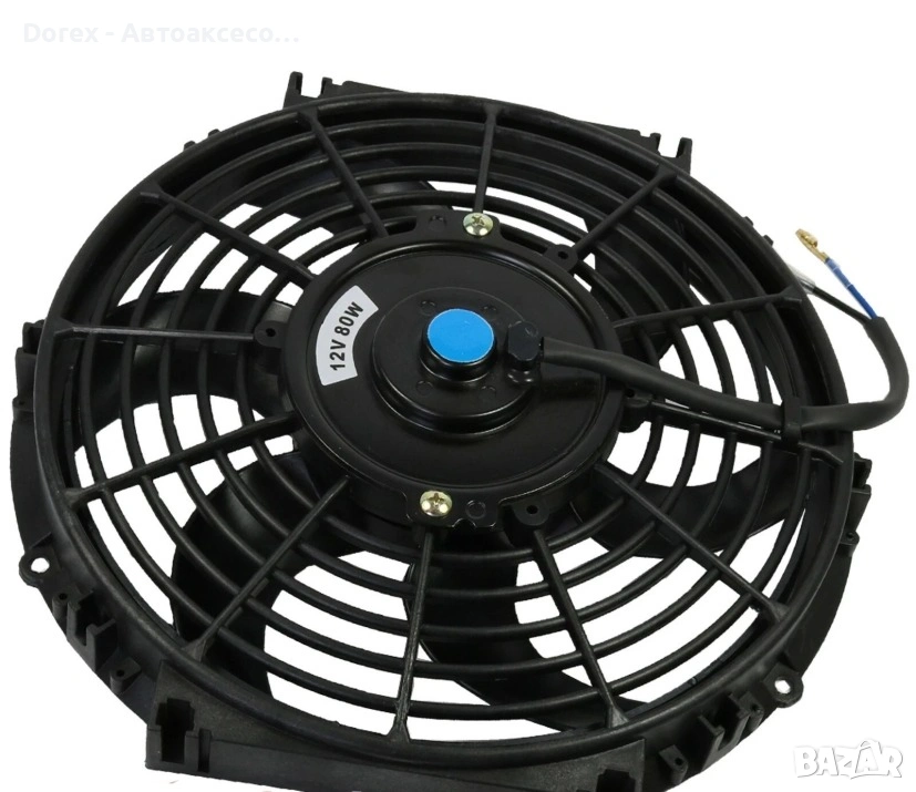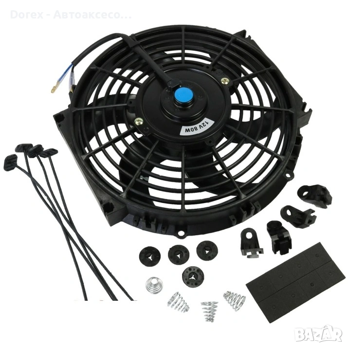 Универсален електрически вентилатор перка за радиатор - 10'' (25см), 12V, 80W, ABS и стомана, безшум