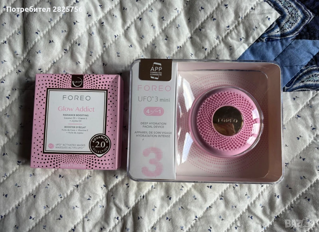 FOREO UFO™ 3 Mini звуков уред за ускоряване ефекта на маските за лице + FOREO UFO™ Glow Addict озаряваща маска за лице 6 бр, цена 50 евро