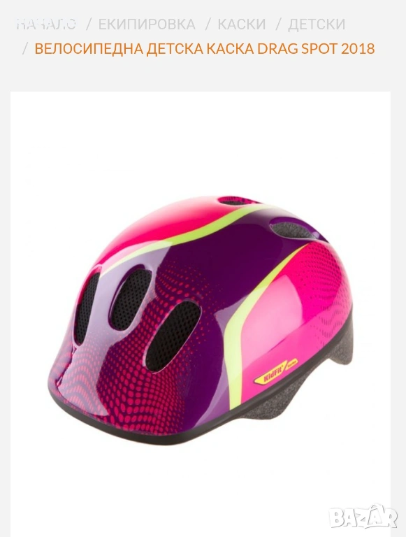 Моделът Drag Spot е от най-новата серия детски каски на Drag за 2018 година. При него е усъвършенстван дизайнът, вентилацията и разбира се - сигурността. Създадена е по европейския стандарт за безопасност EN 1078