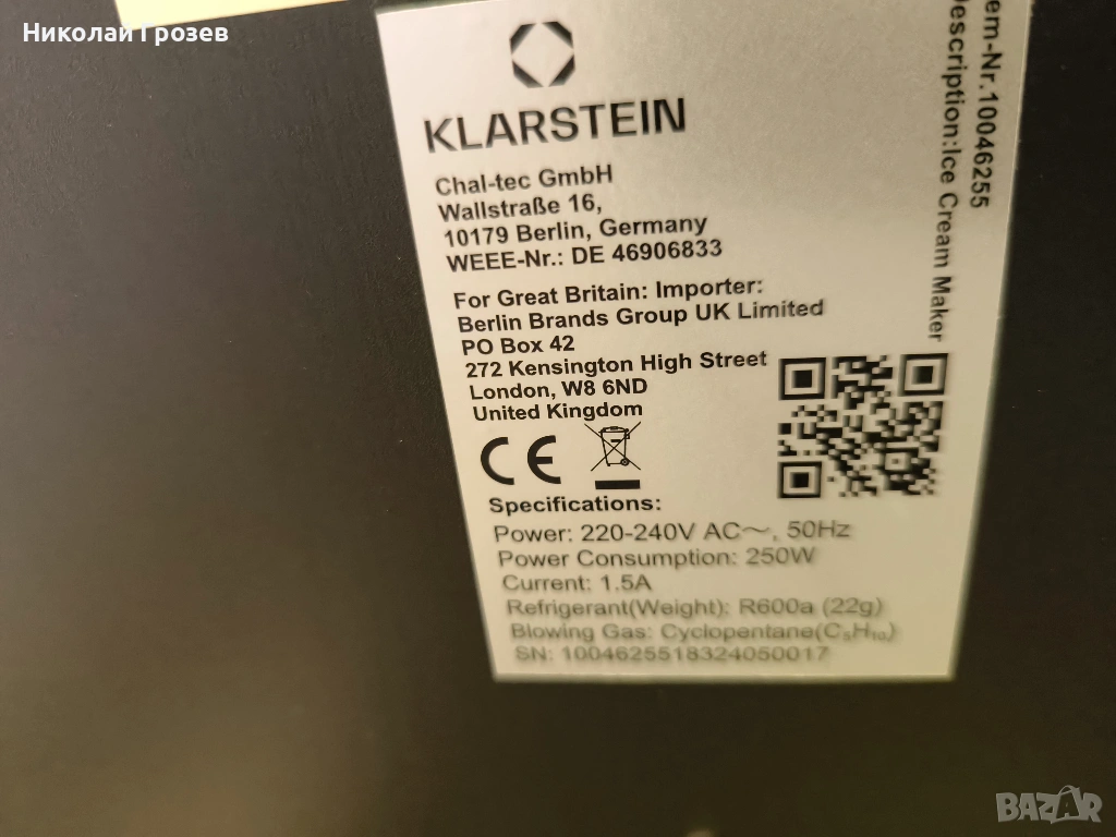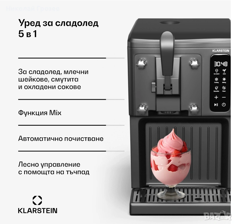 Машината за сладолед на Klarstein е оборудвана с автоматична система за почистване, за да предотврати неудобството от почистването след консумация на сладолед.