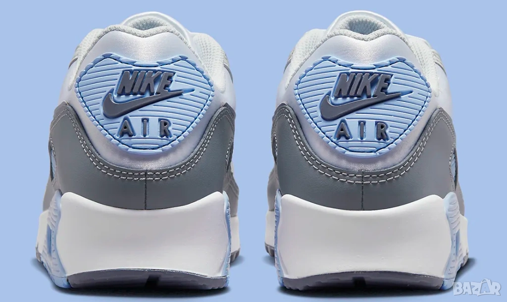 Nike Air Max 90 "Cobalt Bliss" (известен още като "Blissful Blue" или "Grey White Blue"), предназначен специално за жени. Тази итерация на класическата обувка за бягане от 90-те години се отличава със свеж и модерен дизайн в неутрални тонове с деликатни цветни акценти.