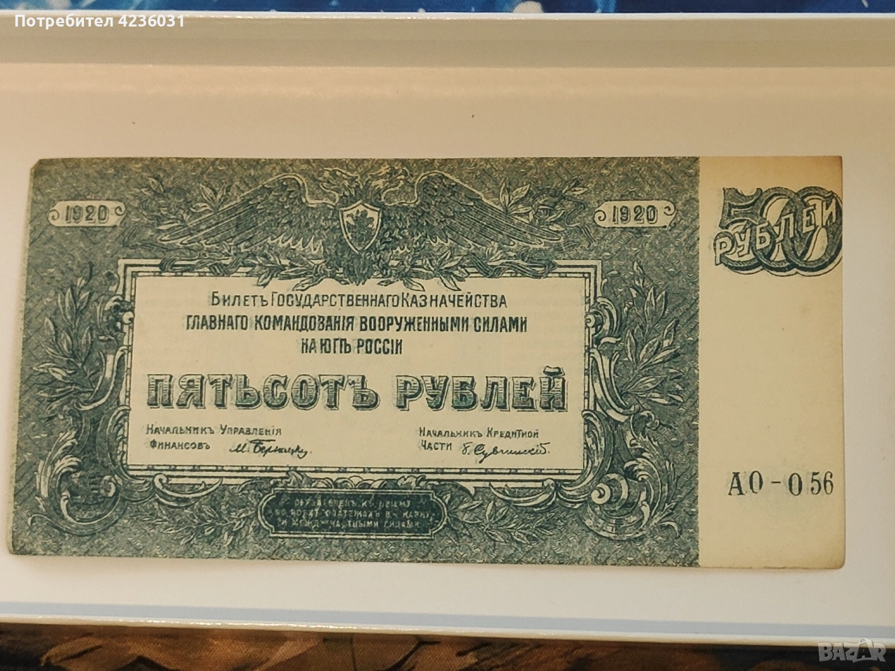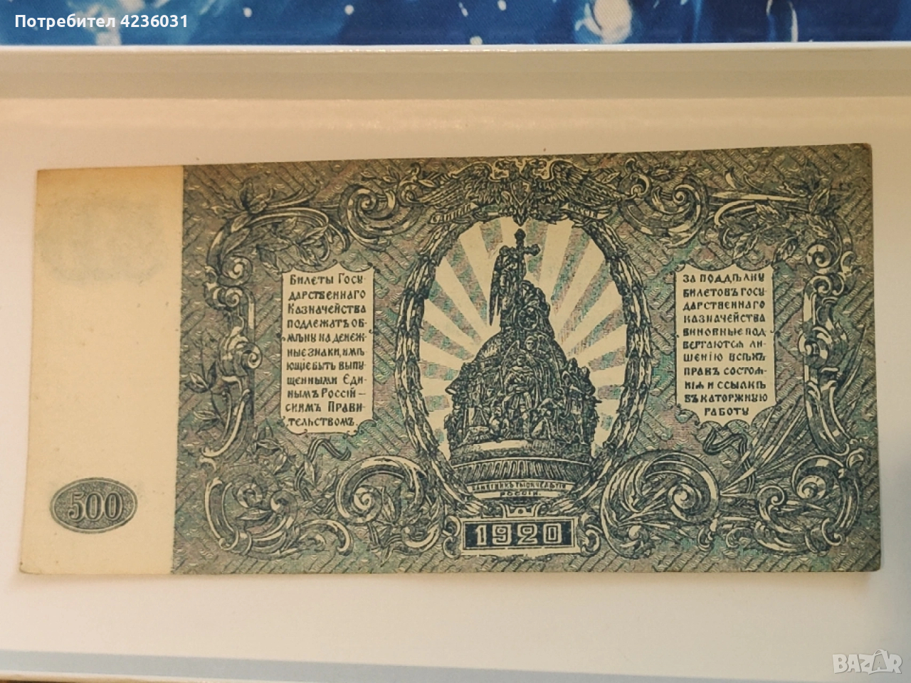 Стари руски 500 рубли от 1920г. Състоянието е видно от снимките. Имам около 30на от този вид.