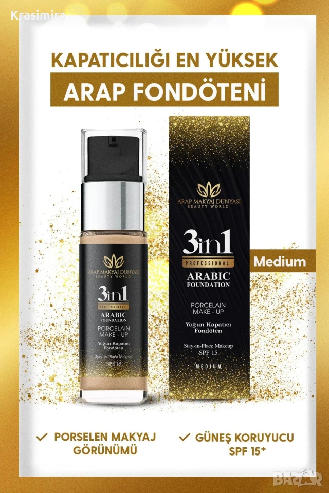 3в1 Арабски фон дьо тен – Пълно покритие + SPF 15 + Естествен блясък