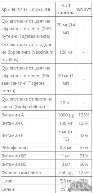 Витамин А и цинк допринасят за поддържането на нормално зрение. Цинкът допринася за нормалния метаболизъм на витамин А.