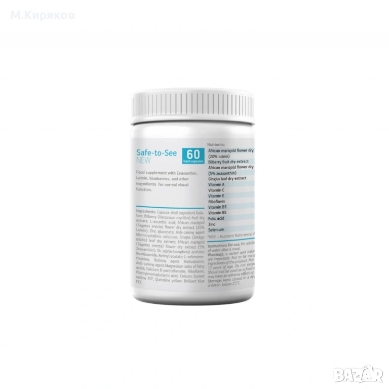 Safe to See - NEW Vision. Биологично активна хранителна добавка, която съдържа най-важните витамини за органите на зрението и микроелементи, които осигуряват тяхната защита. Цялостна защита на здравето на очите. Safe to see съдържа сух екстракт от боровинка, както и лутеин и зеаксантин. При ежедневен прием: