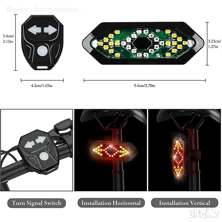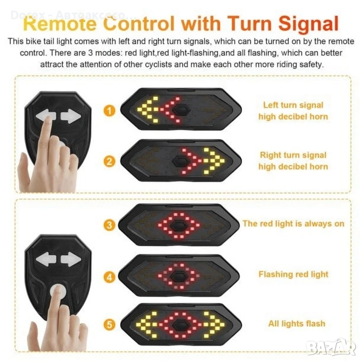 Комплектът за задна светлина с мигачи и клаксон е практично и многофункционално решение за повишаване на безопасността при каране на велосипед, тротинетка или други превозни средства. Осигурява отлична видимост, лесно управление и допълнителна звукова сигнализация при движение в градска и извънградска среда.