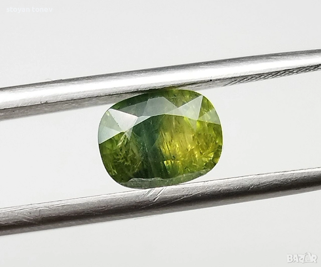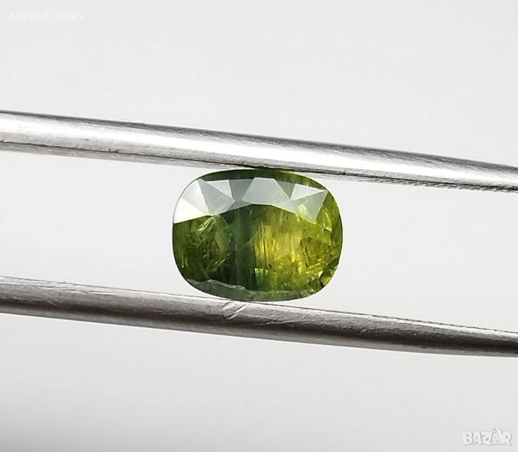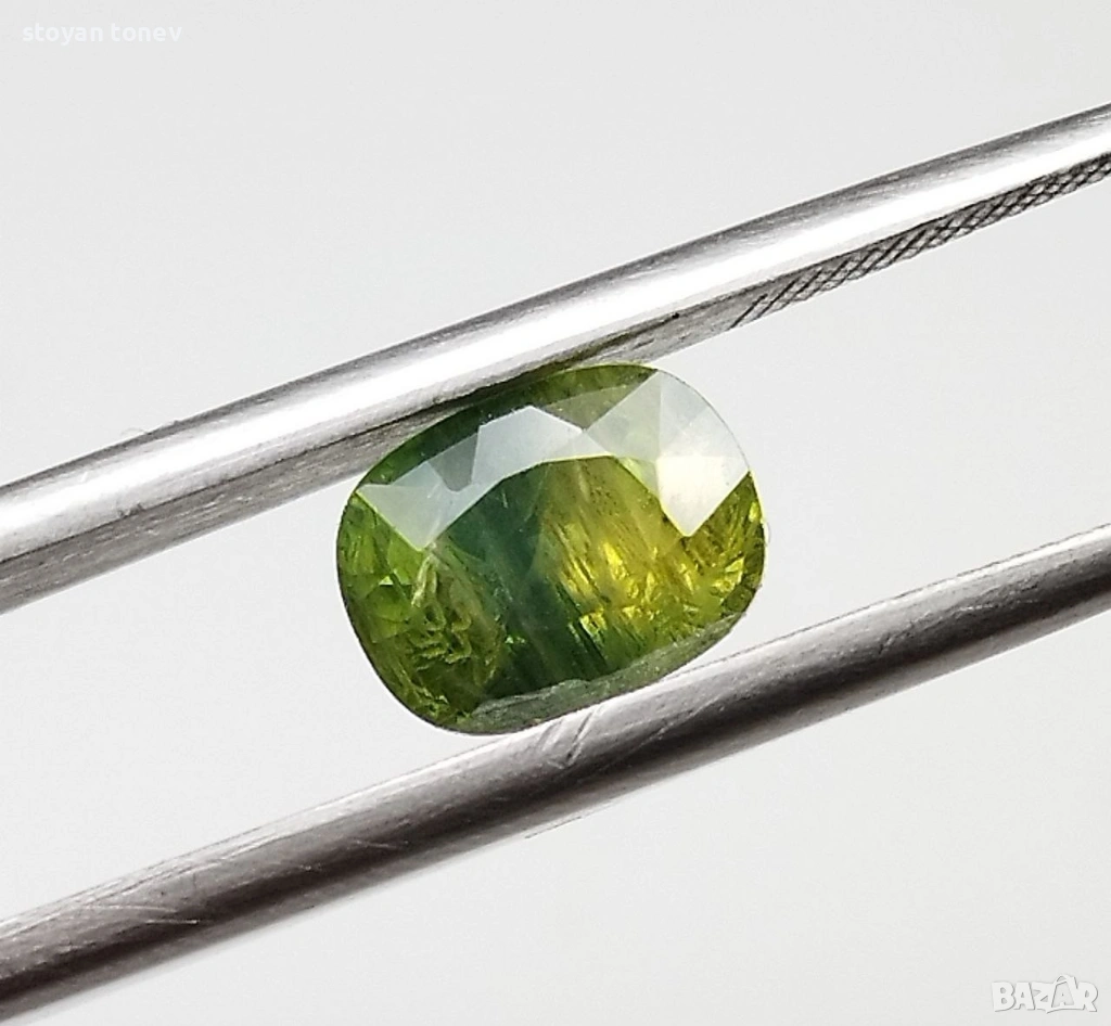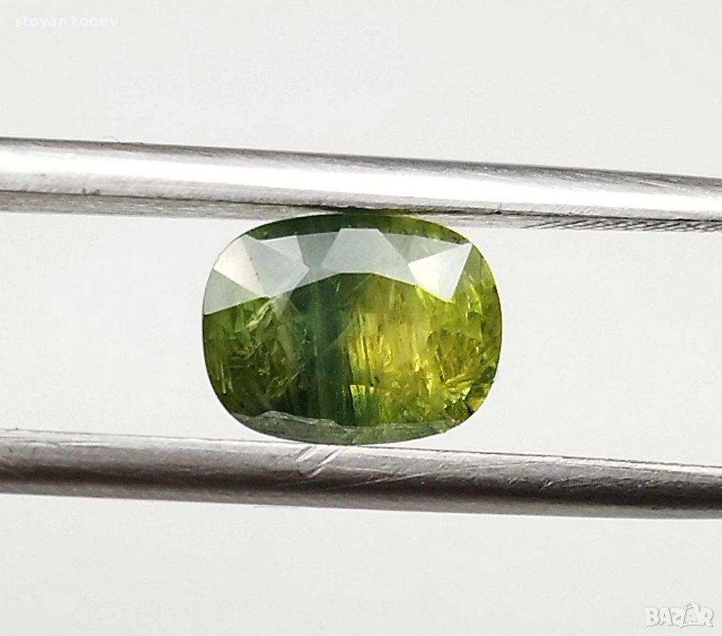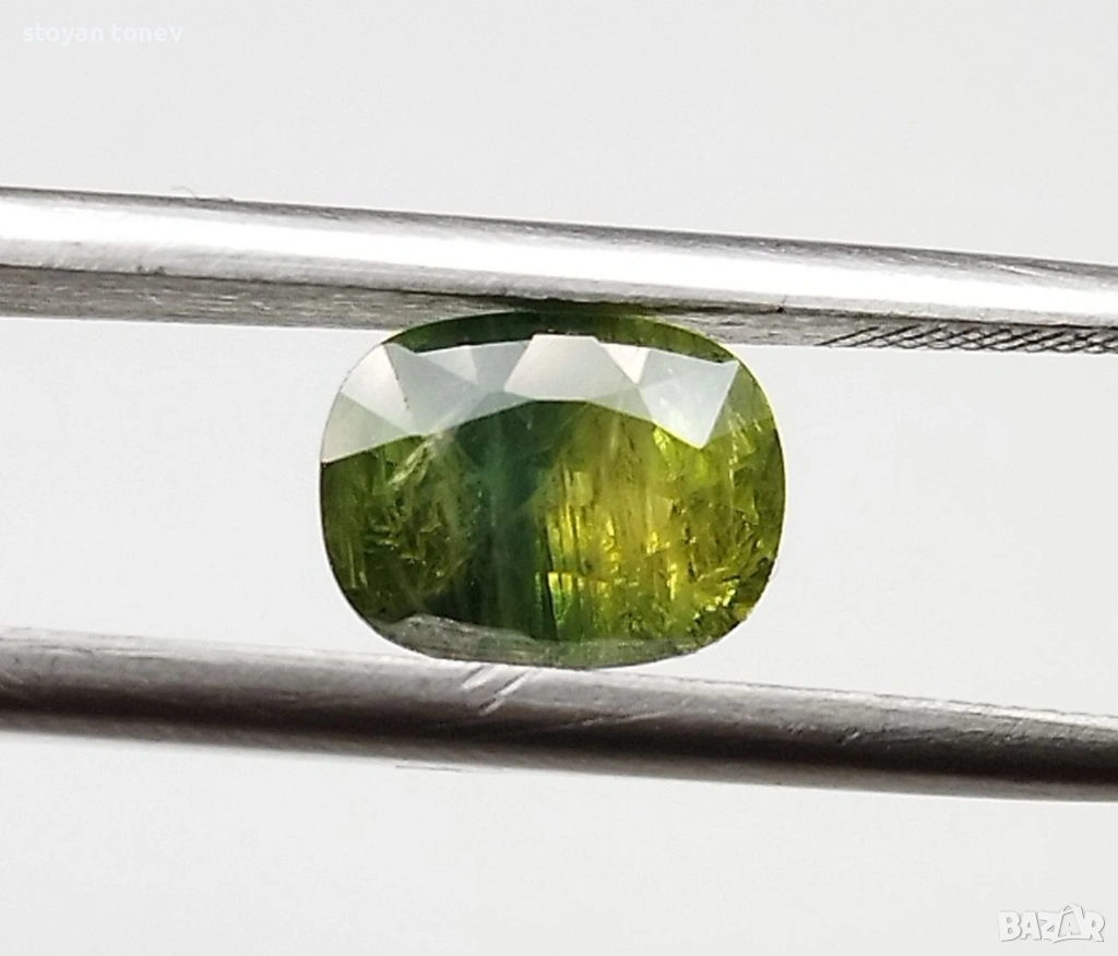 Цвят: Прекрасен yellowish-green – жив, наситен жълтеникаво-зелен цвят с блестящи отблясъци и уникален "мъхест" ефект вътре. Камъкът изглежда свеж, енергичен и много привлекателен под всякаква светлина!