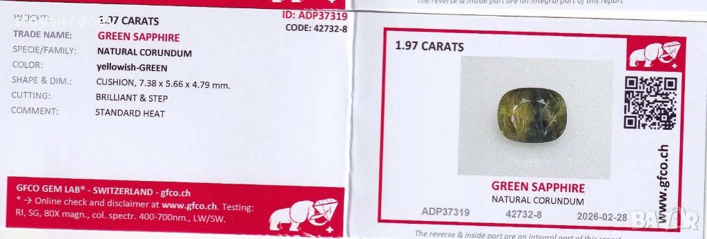 - Сертифициран от GFCO Gem Lab (Швейцария) стандартно нагряван