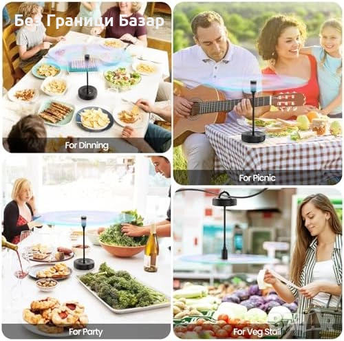 Нови Вентилатори против мухи за маса храна 4 броя 2000mAh до 20 часа работа