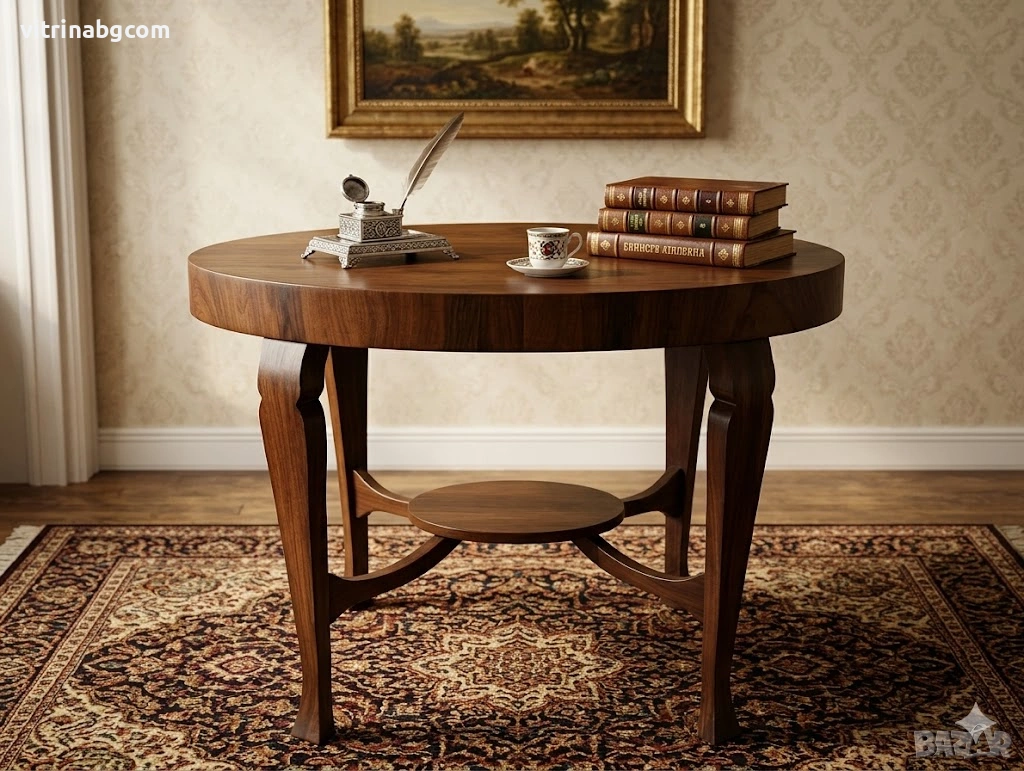 ⚠️ Състояние: Масата се продава в състояние за реставрация. Има щети по лака на плота и краката (виж снимките). Няма конструктивни счупвания. Идеална е за хоби проект или за професионални реставратори.