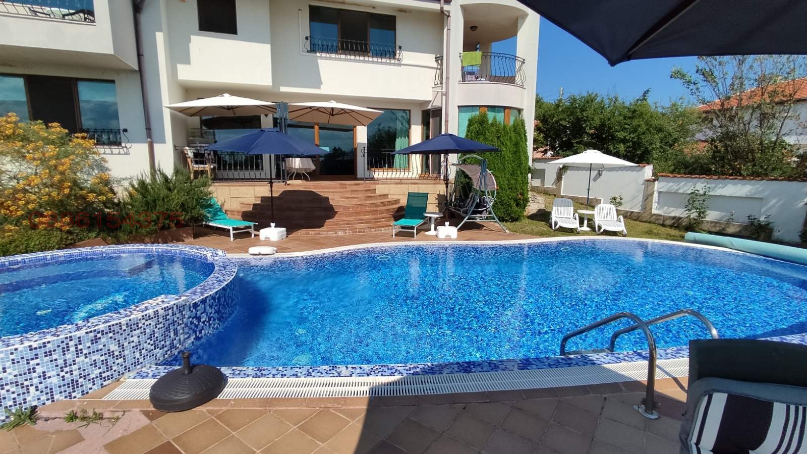 Собственик продава СЪВРЕМЕННА КЪЩА в близост до морския бряг с невероятна гледка и панорама към морето, Несебър, Сл.бряг и Стара планина. Разположена на южен склон във вилната зона над Слънчев бряг. Разгъната застроена площ - 590 кв м, от които 490 жилищна площ, останалата квадратура е гражи (4бр.). Двор 1250 кв м. Къщата е на два етажа, проектирана по всички съвременни стандарти - изолация, разчупена архитектура и решения с много витрини, прозорци и изложение, които правят всяка част от къщата изключително светла.