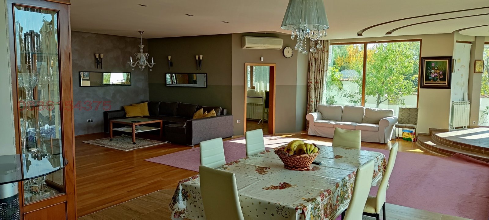 Имотът е напълно обзаведен. Подови настилки - висок клас естествен дъбов паркет и керамика. Барбекю зона в задната част на двора+обширна покрита част за съхранение на дърва.