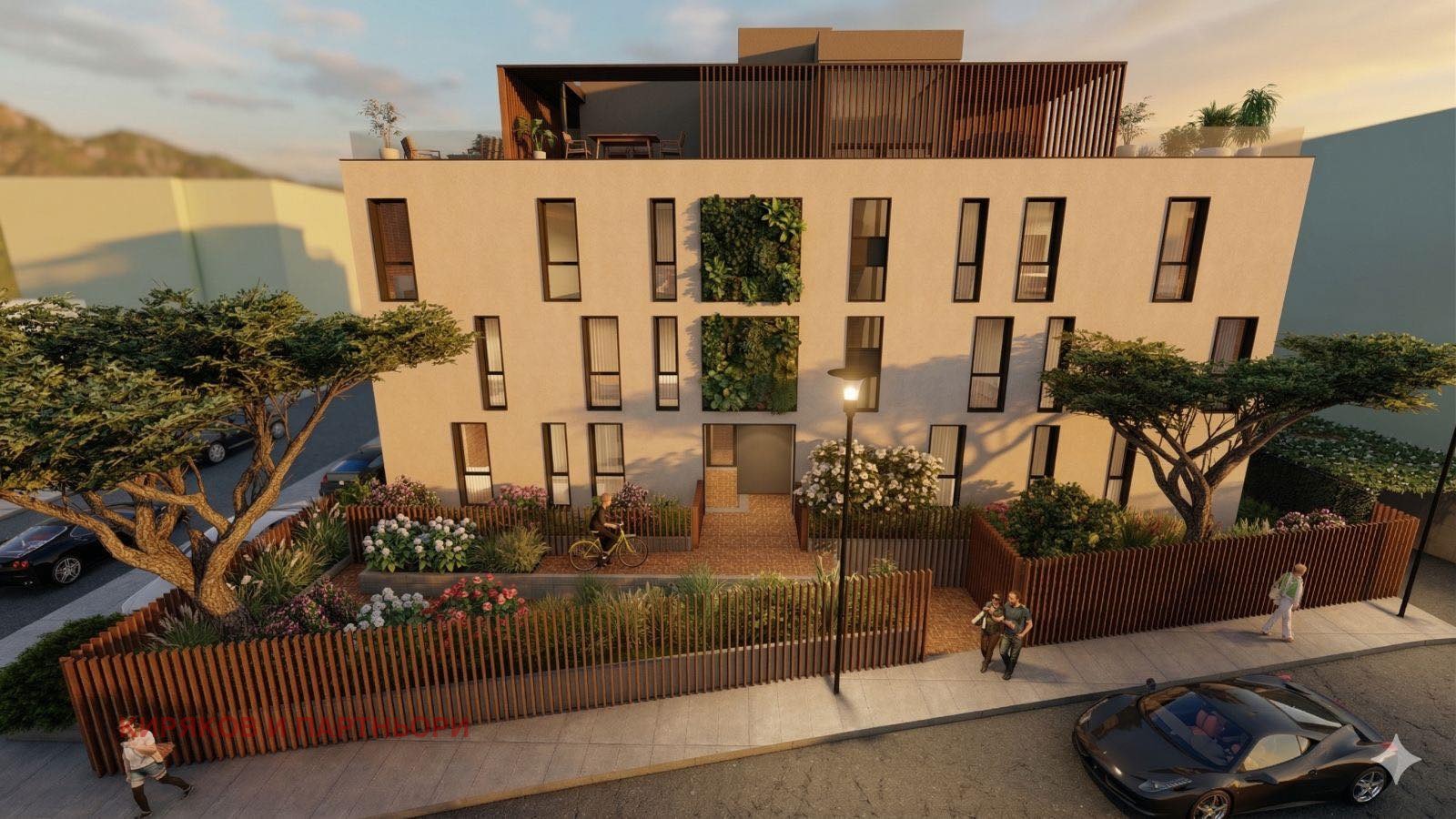 Жилището ще бъде изградено в бутикова сграда с 13 апартамента и подземен гараж. При проектиране на сградата са избрани оптимални разпределения на всяко от жилищата с цел осигуряване на максимален комфорт на живущите. Помещенията са добре осветени с преобладаващо изложение юг-югоизток, като на партерния етаж (1,2м. над нивото на улицата)са предвидени индивидуални дворове, с изградена пергола, позволяваща ефективното им използване независимо от метеорологичните условия.