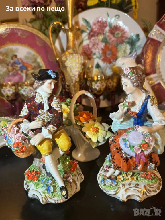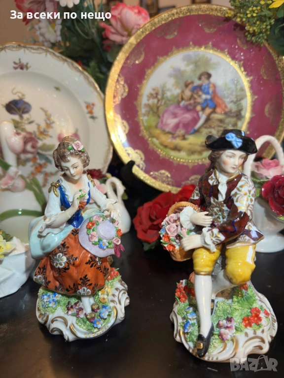 Sitzendorf Germany Circa 1921 “ Великолепните цветари” без преувеличения, тези са просто номер едно от всички подобни от този бранд, изключително запазени и като детайли и като цветове. Истинска немска класика, блестяща изработка и визия, височини по 15 см., малко по-високи от стандартните, невероятно красиви лица с великолепни очи, коси, пръсти и в отлично състояние и качество. Приказно, класическо богатство за всяка колекция или витрина.