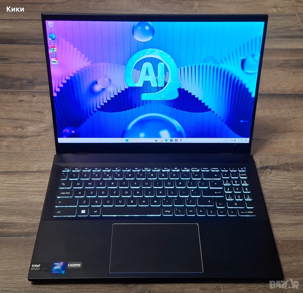Купуван е за 1800€ . Лаптопа е от AI поколението създаден за наистина голямо натаоварване . В комплект с оригинално зарядно . Windows лицензиран ъпдейтнат до последна версия, батерия в перфектно състояние , ссд също може да видите на снимките.