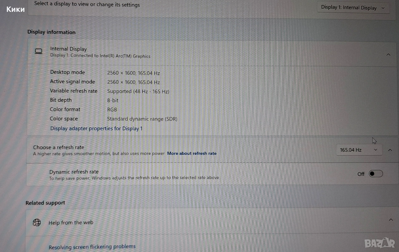 165 херца кристална картина, изключително малко екрани са с такива параметри и качество . Звук много силен и ясен. Метален корпус много качествена изработка .
