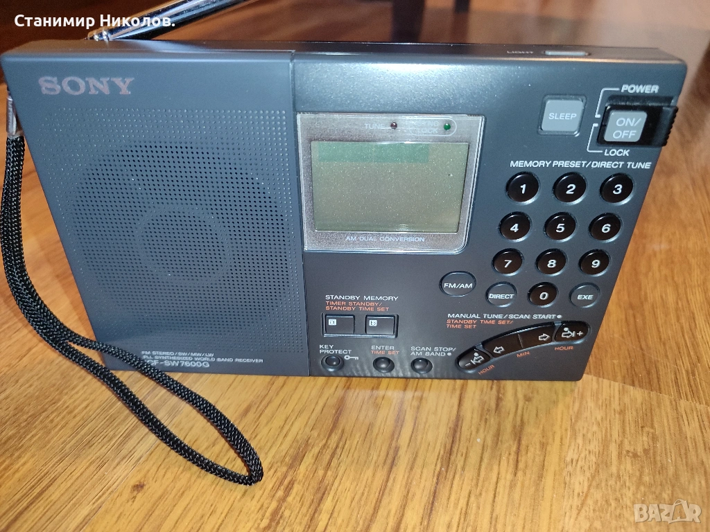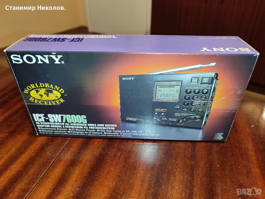 Използвано радио Sony ICF-SW7600G FM Stereo/SW/MW/LW PLL World Radio Band Receiver пълен комплект.Приемника за годините си изглежда като нов, направена му е профилактика в оторизиран сервиз Sony и са сменени кондензаторите и осветлението.Добавил съм и допълнителни оригинални аксесоари.