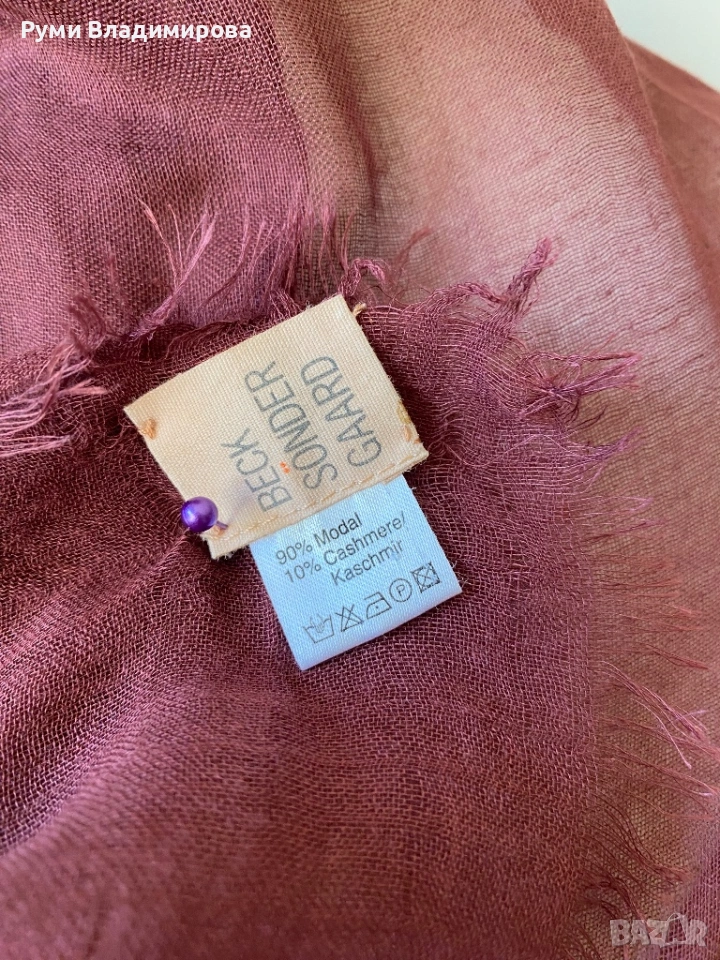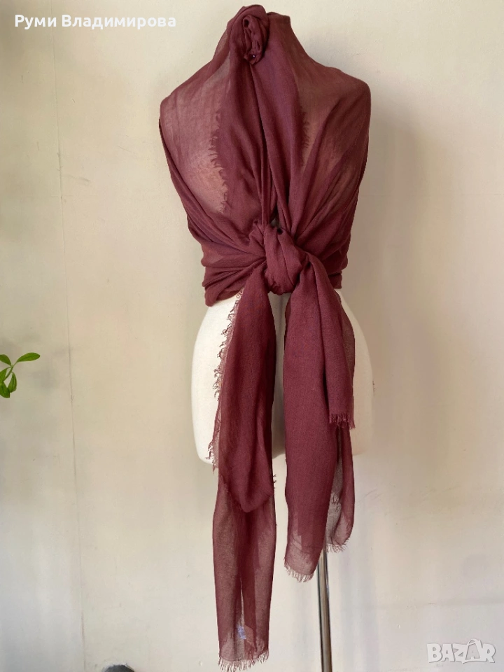 Тъмночервен шал Beck Sondergaard от 90 % модал и 10 % кашмир, голям размер, прозрачна, тънка, ефирна материя, доставка с Еконт.