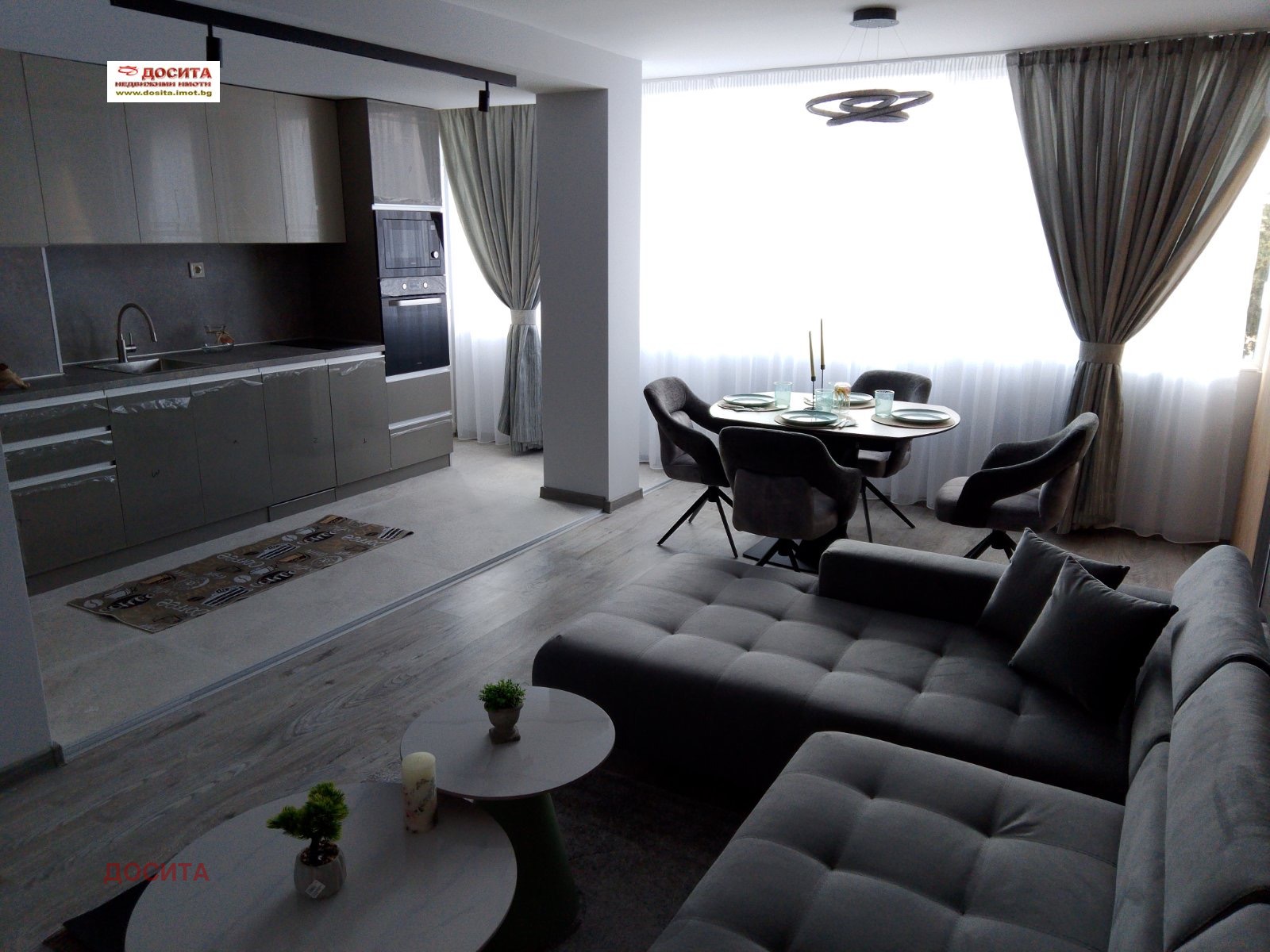 🍽️ Всекидневна с кухненски бокс: Модерно и функционално пространство, напълно обзаведено и оборудвано.