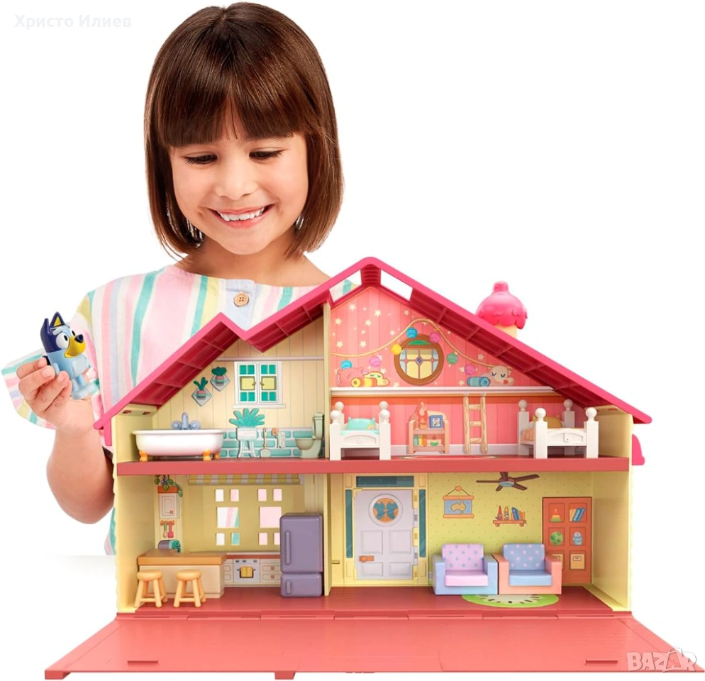 В къщата на семейство Блуи има щедро пространство за въображение и забавление! Чрез лесното издърпване на задния панел на къщата, тя се превръща в красива външна тераса, идеална за игри и приключения.