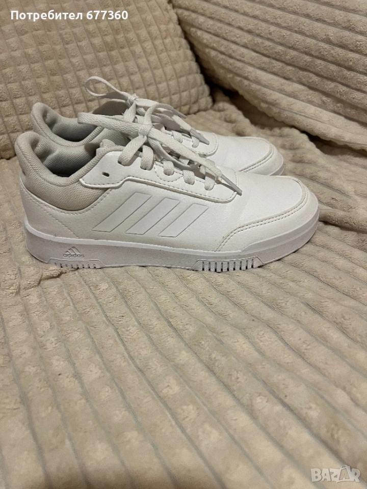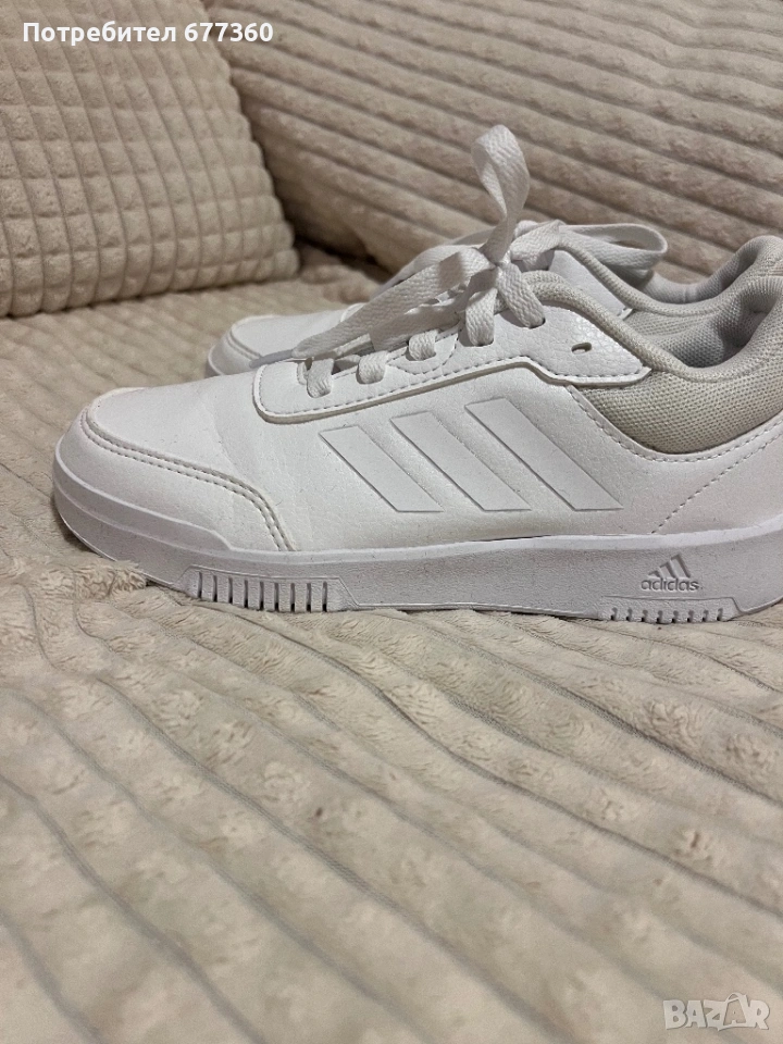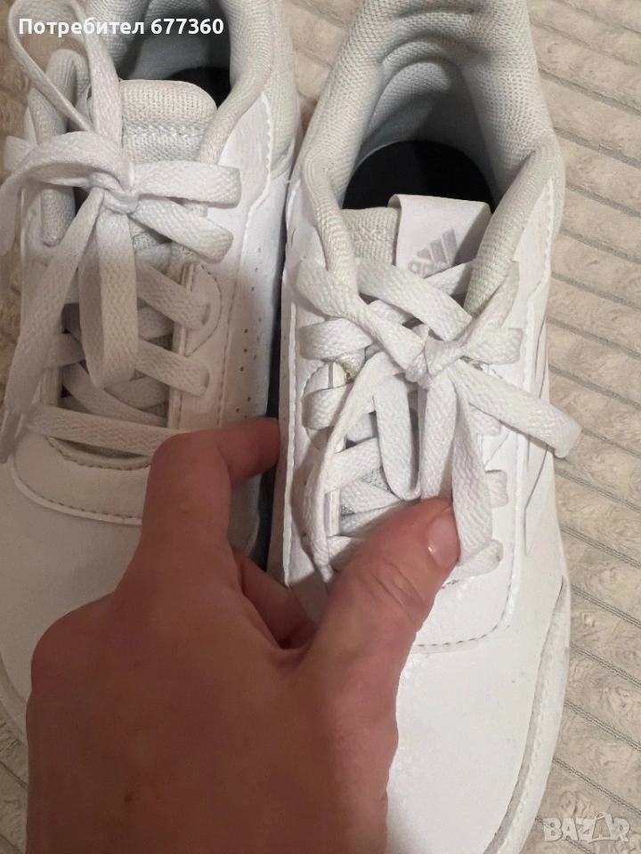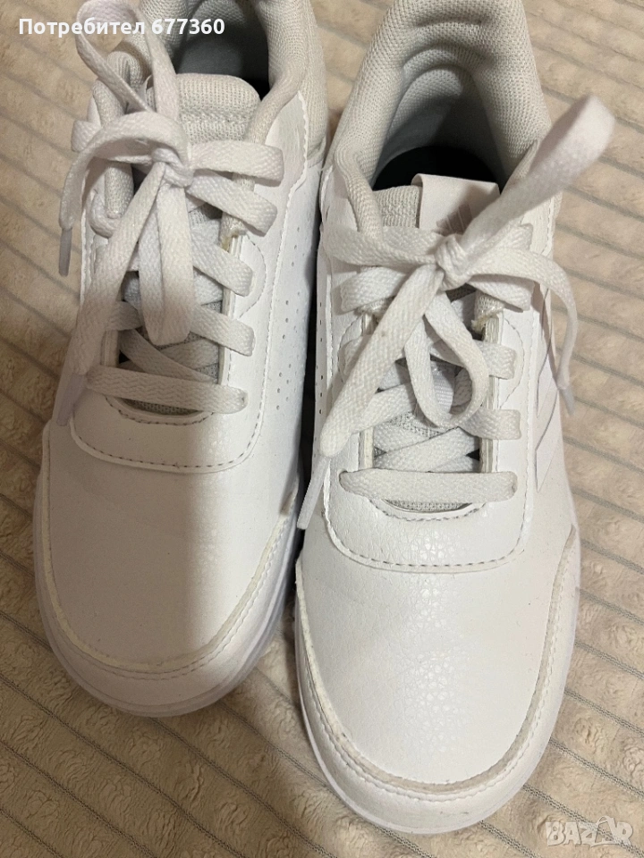 Бели спортни обувки adidas в употреба. Маратонките са обувани веднъж навън.Дъщеря ми не се хареса нещо.Израни и в отлично състояние.