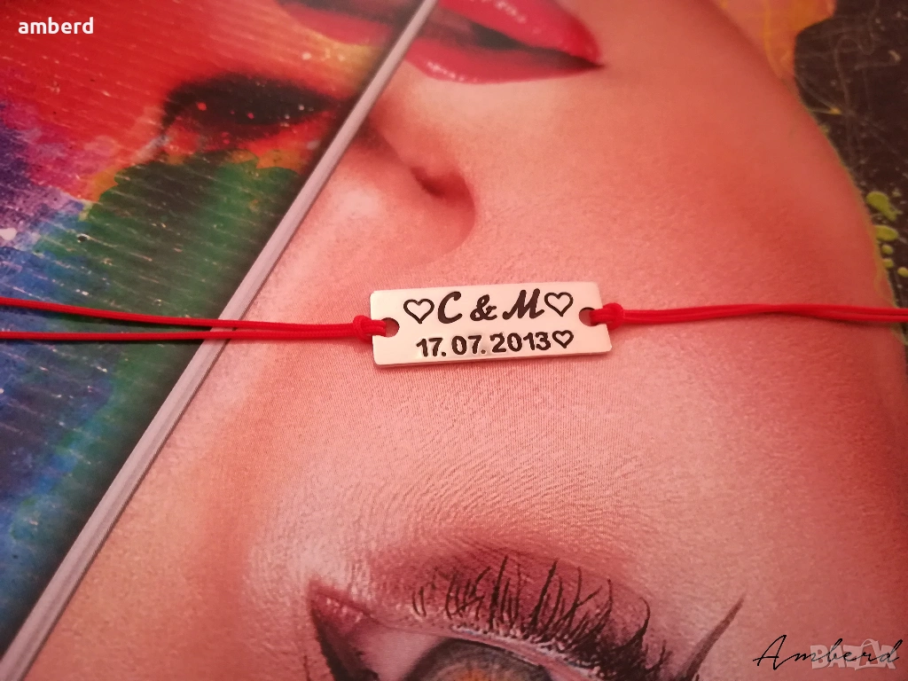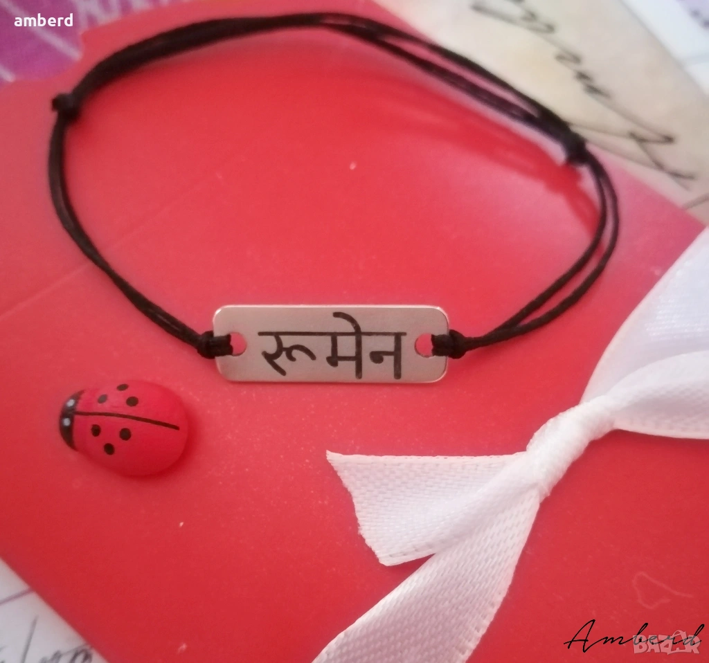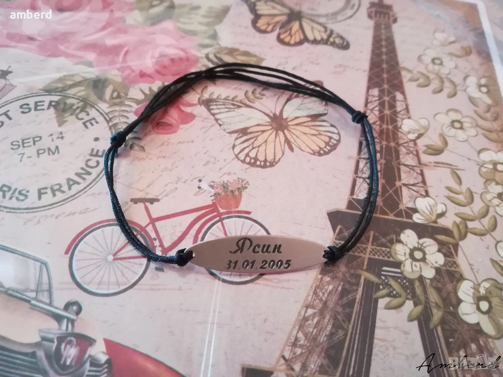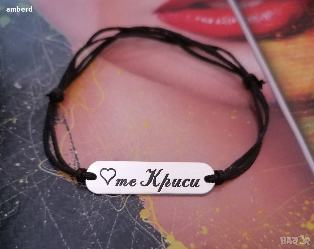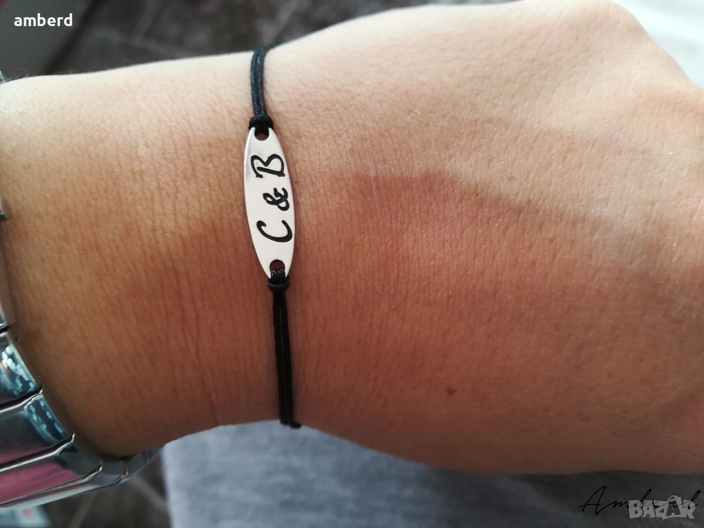 Гривни на конец и сребърен елемент с надпис по ваше желание