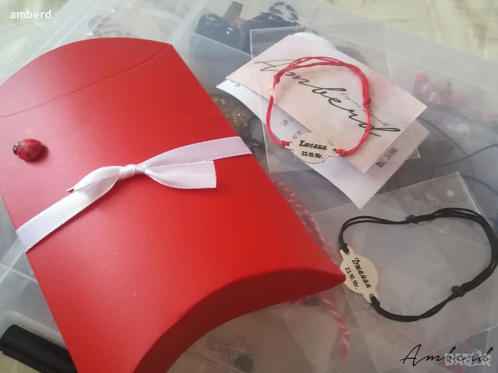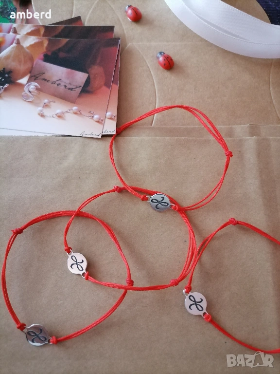 Страхотни гривни, изработени от сребърен елемент изцяло по ваша идея и конец (черен, червен, сетло и тъмно син). Цената варира между 20 и 40 евро, в зависимост от сложността на дизайна. Време за изработка между 4 и 8 работни дни.