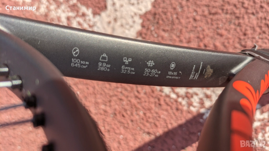 - Плетка на кордажа: 18x16 (Spin Effect Technology) – позволява по-голямо движение на кордите за максимално въртене на топката.