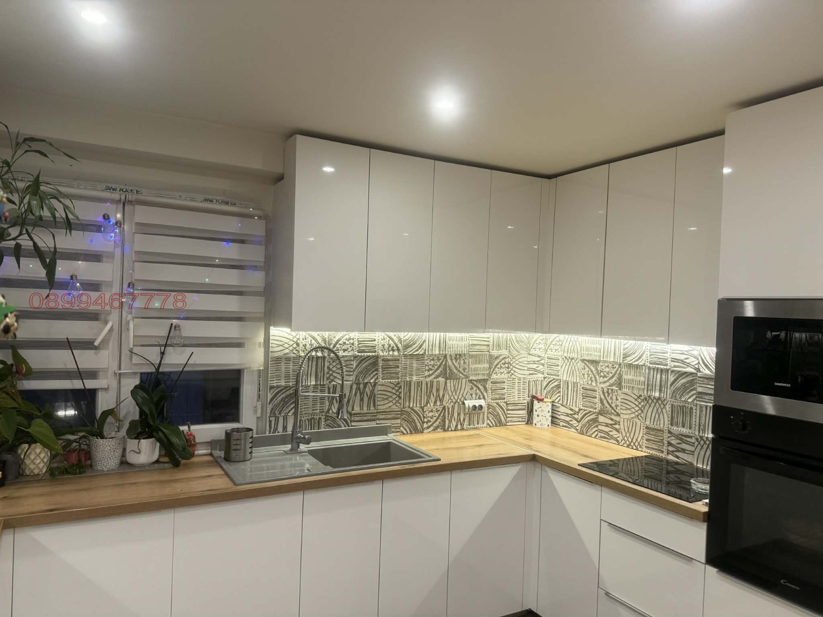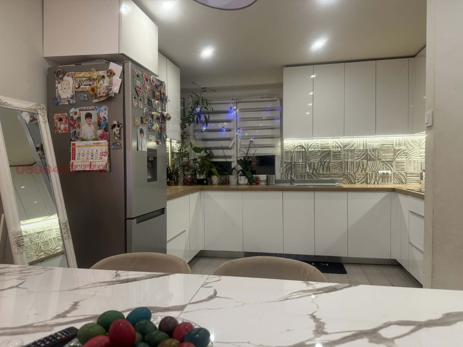 Апартаментът се намира в блок Домостроител, до Руската Гимназия, с площ от 110 кв.м, разположен на 5 етаж. Готов за нанасяне. Напълно завършен разширен тристаен апартамент, обзаведен с нови мебели и техника. Имотът се състои от просторен коридор, две отделни мокри помещения, просторна детска стая с тераса, кухня, спалня с тераса и просторен и светъл хол.