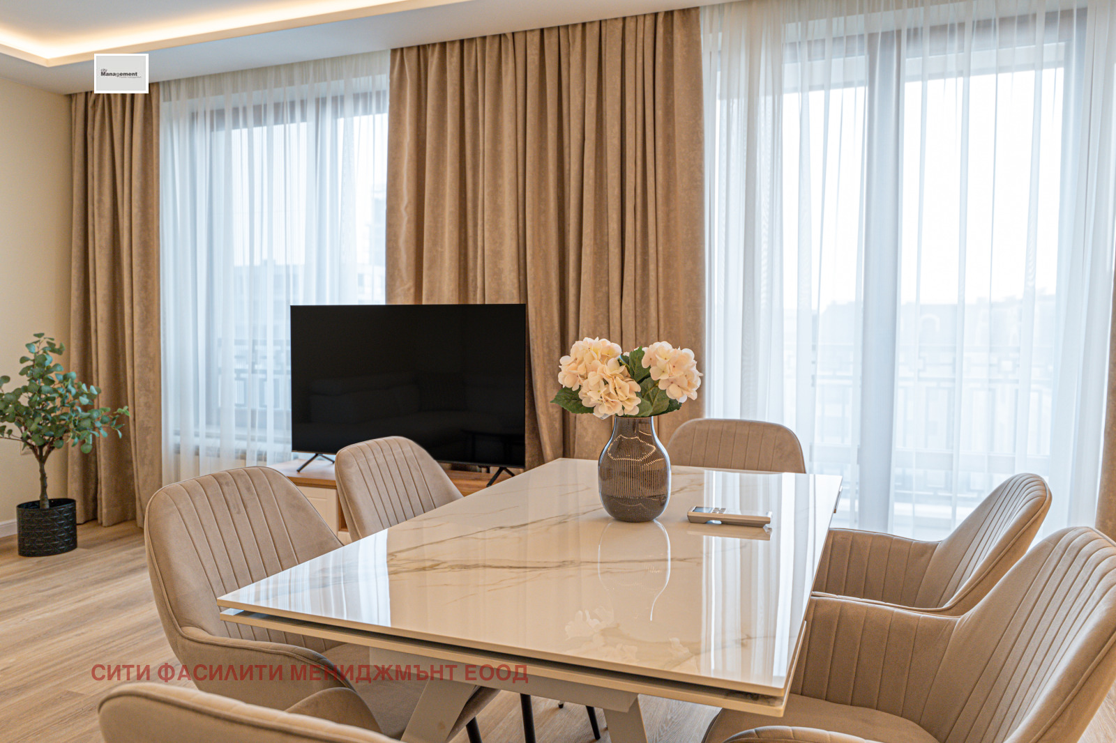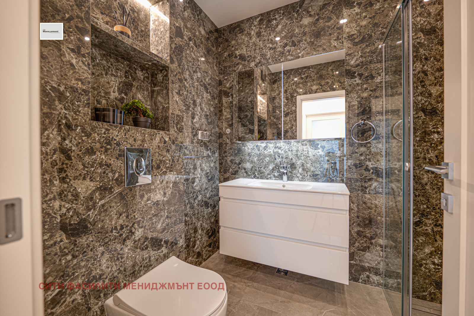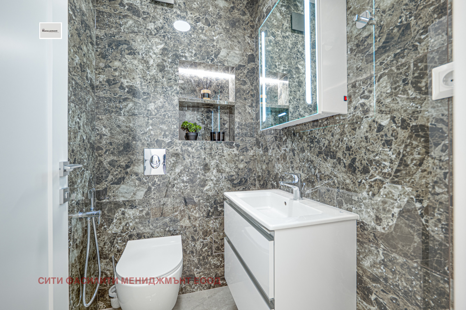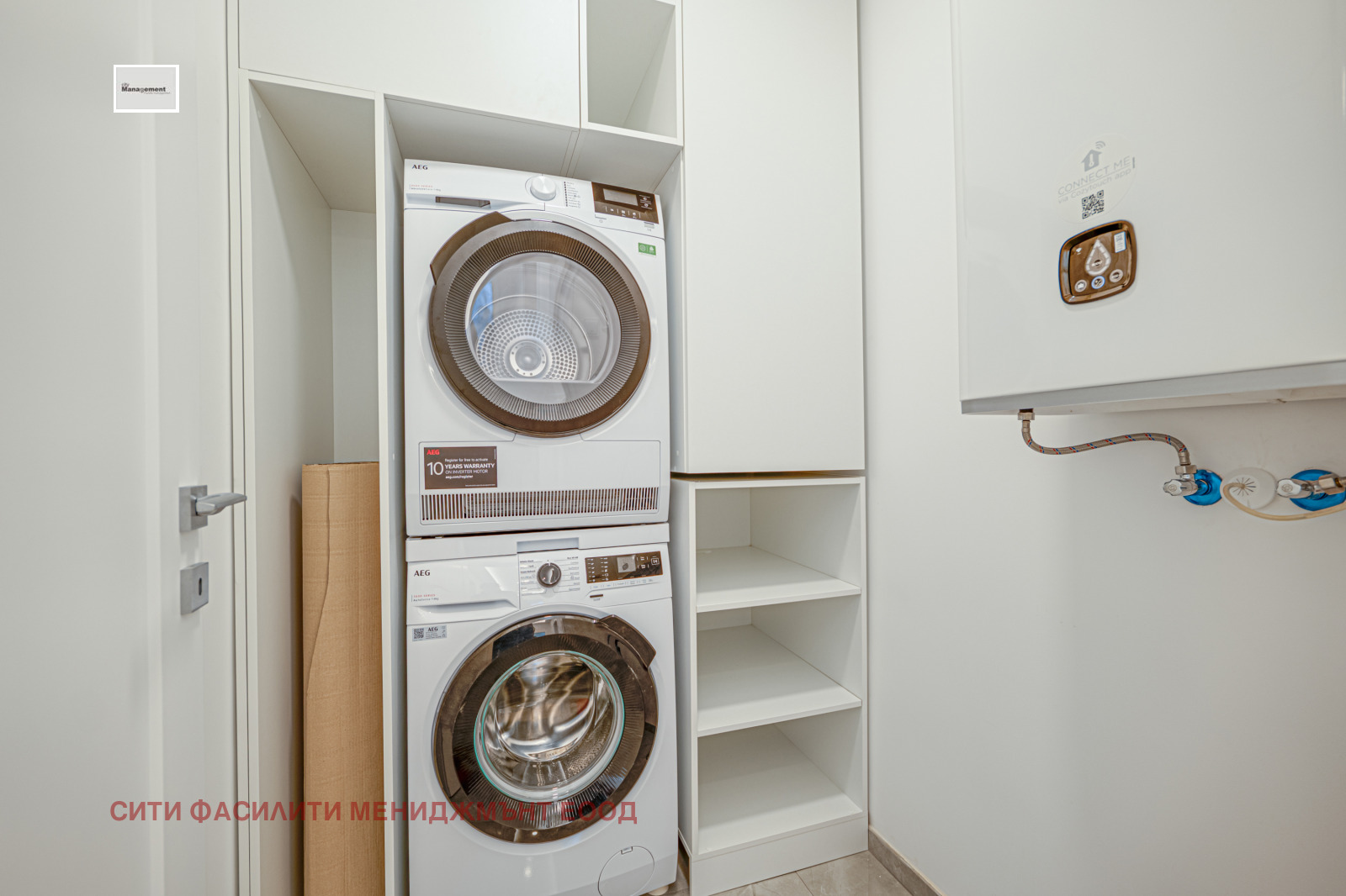 Имота се състои от две спални, две бани, всекидневна с кухненски бокс и склад. Отоплението е на газ, с индивидуален котел. Охлаждане-с климатици. Комфортни и удобни мебели.Кухнята е оборудвана с всичко нужно за едно съвременно домакинство.В наемната цена е включена месечната такса подръжка на общите части и едно подземно паркомясто. Комплекса се намира на много комуникативно място, до Мол Парадайс, Метро станция Витоша и бизнес район Хладилника. Предлага 24ч. охрана, рецепция, фитнес и закрит плувен басейн. За огледи с предварително уговорен час.Комисиона на агенцията е един месечен наем. Работим с колеги.